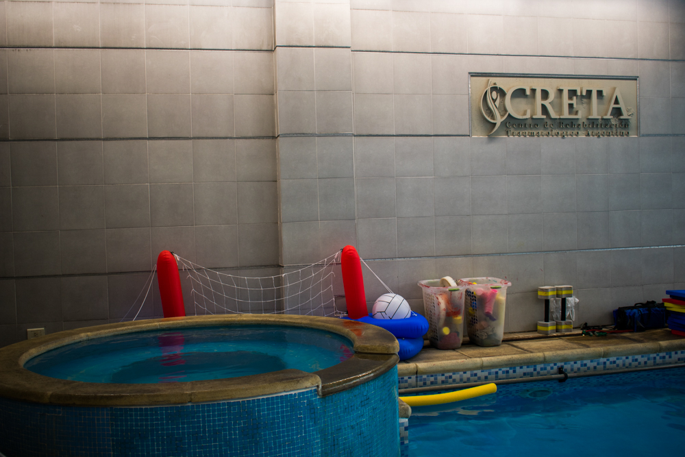 Dispone de cuatro espaciosas y luminosas salas de espera, equipadas con música funcional, frigobar, TV plasma, WI-FI, y otros servicios para un ameno pasar. Completando el área de actividades físicas, CRETA cuenta con cómodos y modernos vestuarios con guardarropas y casilleros para damas, caballeros y personas discapacitadas. Creta dispone de una de las piletas climatizadas más grande de la ciudad en su rubro, de 12 m de largo y 6 m de ancho, hidromasaje, diferentes niveles de profundidad y cerramiento vidriado de última generación donde cada paciente puede disfrutar de toda la gama de terapias acuáticas.